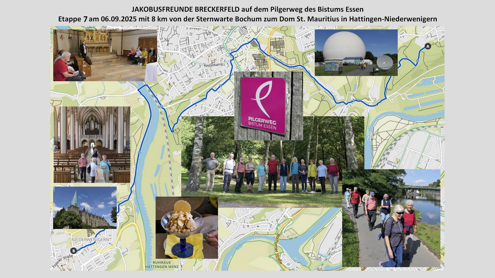 Abschlussetappe der Jakobusfreunde Breckerfeld auf dem Pilgerweg im Bistum Essen – von der Sternwarte in Bochum zum „Dom“ in Niederwenigern