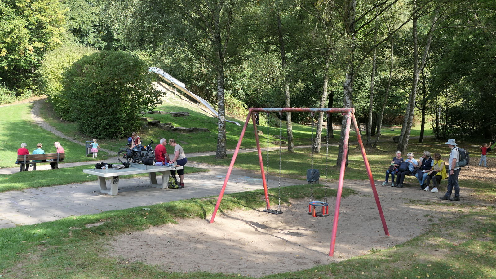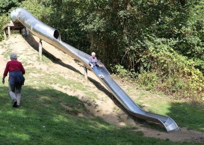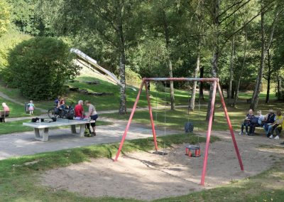 Am 6. September machte sich eine kleine Gruppe der Jakobusfreunde auf den Weg zu ihrer siebten und letzten Etappe auf dem Pilgerweg des Bistums Essen. Dabei waren die beiden VW-Bullis der Pfarrei Christus König wieder sehr hilfreich, denn sie brachten die Teilnehmerinnen und Teilnehmer zunächst zur Sternwarte in Bochum. Von da aus wanderten wir 9 km bei herrlichem Sonnenschein, teilweise über schöne Waldwege und entlang der Ruhr. Sehr lustig war die Rast auf einem Spielplatz.