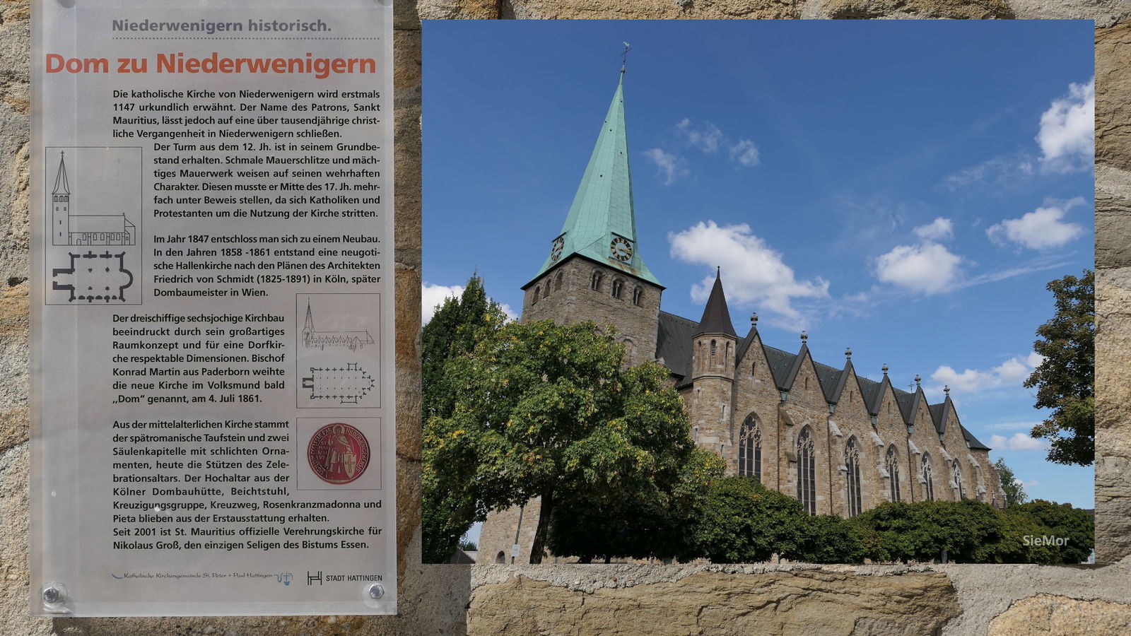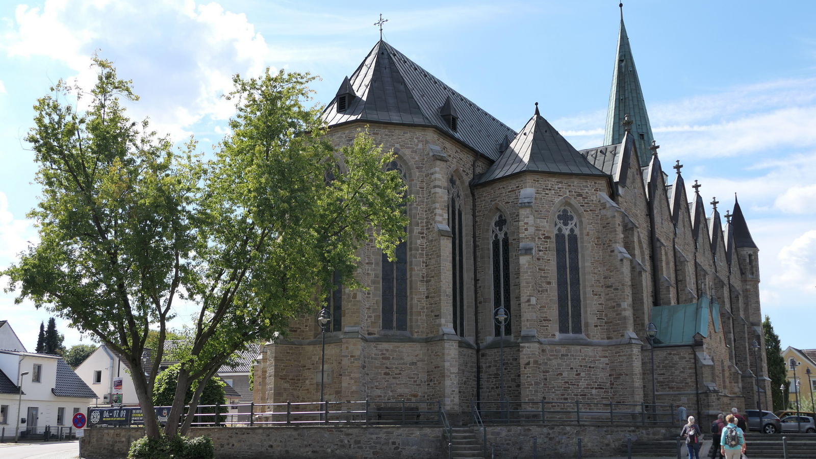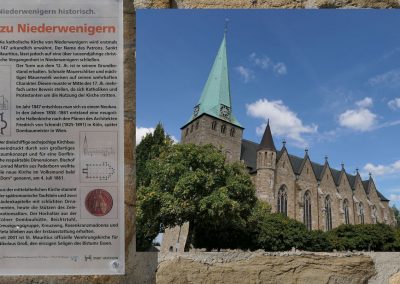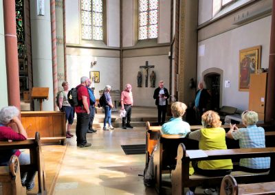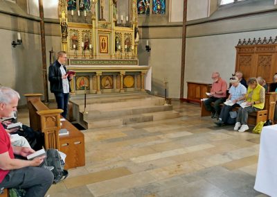 Ziel war der Dom St. Mauritius in Niederwenigern. Die Kirche wird wegen ihrer für eine Dorfgemeinde ungewöhnlichen Größe im Volksmund „Dom“ genannt. Natürlich ist das Ziel dieses Pilgerwegs eigentlich der Dom in Essen, die Bischofskirche des Bistums Essen. Aber weil der Weg dorthin fortan fast nur über Straßen und durch Wohngebiete führt, hatte Ingo Tacke, der die Pilgeretappen plante und führte, im Einvernehmen mit dem Vorstand beschlossen, unseren Pilgerweg im „Dom“ in Niederwenigern zu beenden. Sicherlich eine gute Entscheidung!