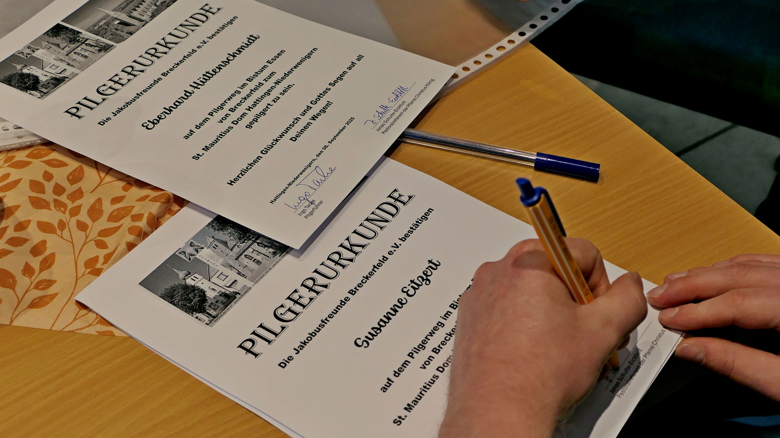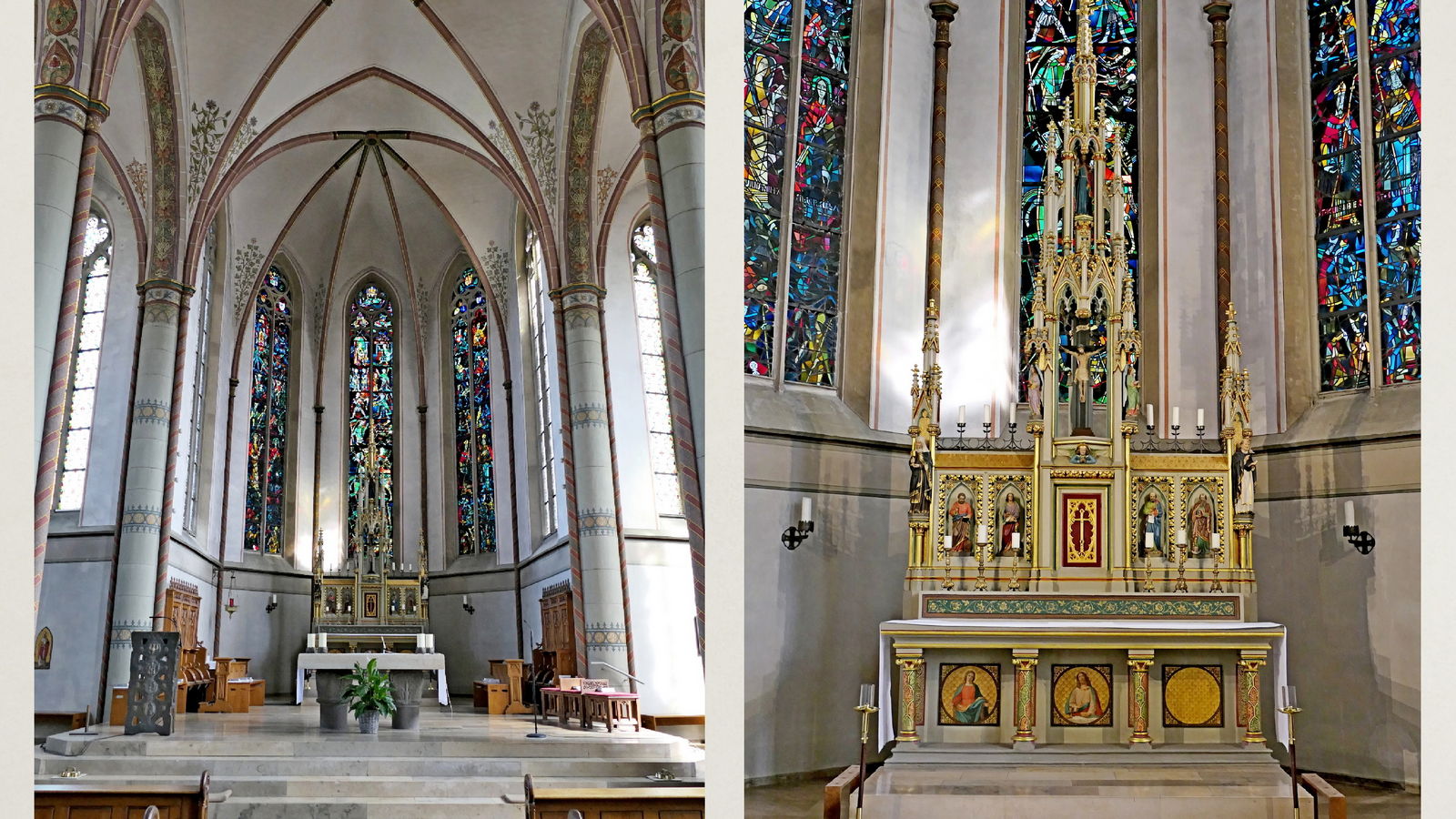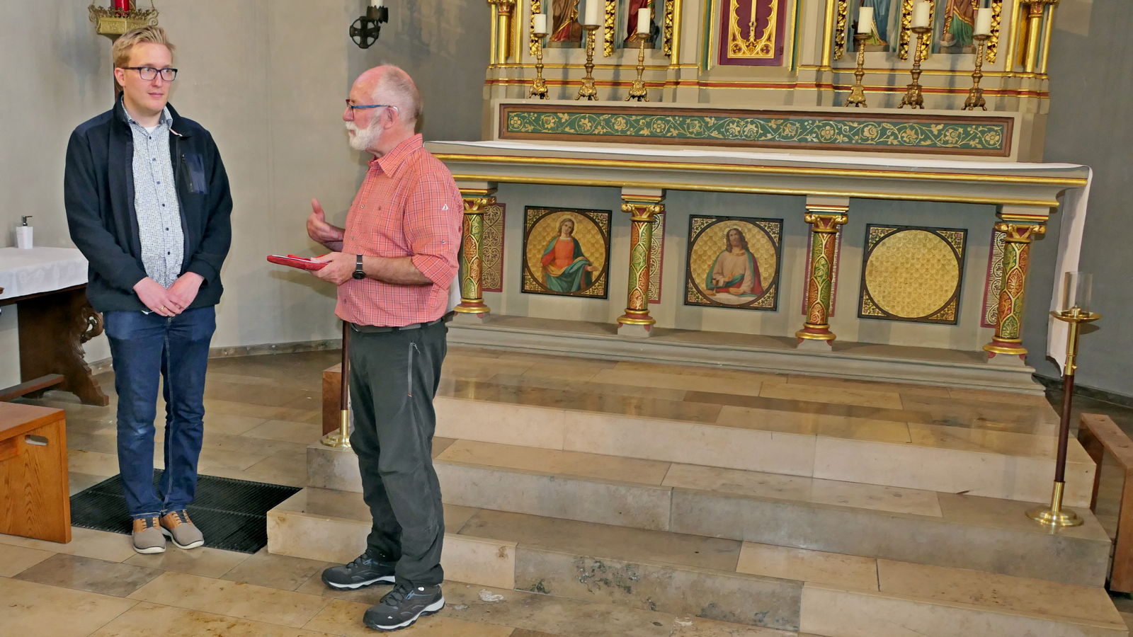 Im Anschluss führte Jonas Schulte-Eickholt die Pilgergruppe durch den beeindruckenden „Dom“ St. Mauritius, der aus einem romanischen Kirchturm und einer riesigen neugotischen Hallenkirche besteht. Die Führung beendete er mit einer Andacht, bei der wir im Chorgestühl Platz nehmen durften. Als Anerkennung und zur Erinnerung erhielt jede Pilgerin und jeder Pilger von Ingo Tacke eine Pilgerurkunde. Danach trafen sich noch alle in fröhlicher Runde in Melanie`s Eisdiele. Am Ende brachten die beiden Bullis alle wieder sicher zurück nach Breckerfeld. Es war ein sehr schöner Tag.
