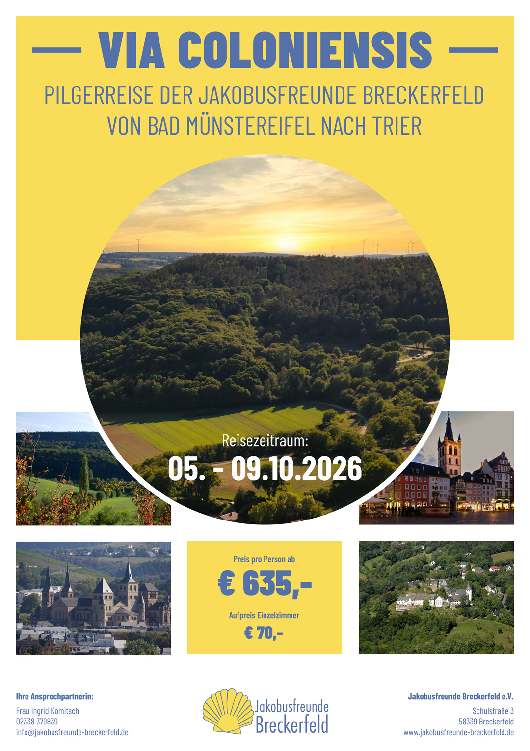 Wir laden Euch ein mit uns im Herbst vom 5.10. – 9.10.26 Teilstrecken auf dem Jakobsweg von Bad Münstereifel nach Trier zu pilgern.